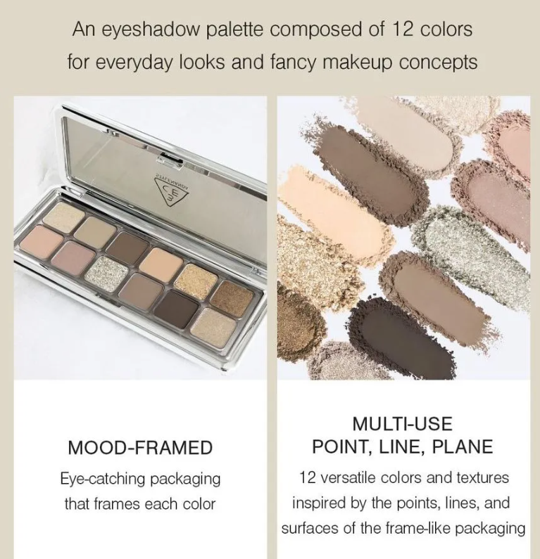 Viene con 12 tonos de colores claros y brillantes para ofrecer un sistema de color de fácil superposición para varios magníficos maquillajes de ojos de fantasía.