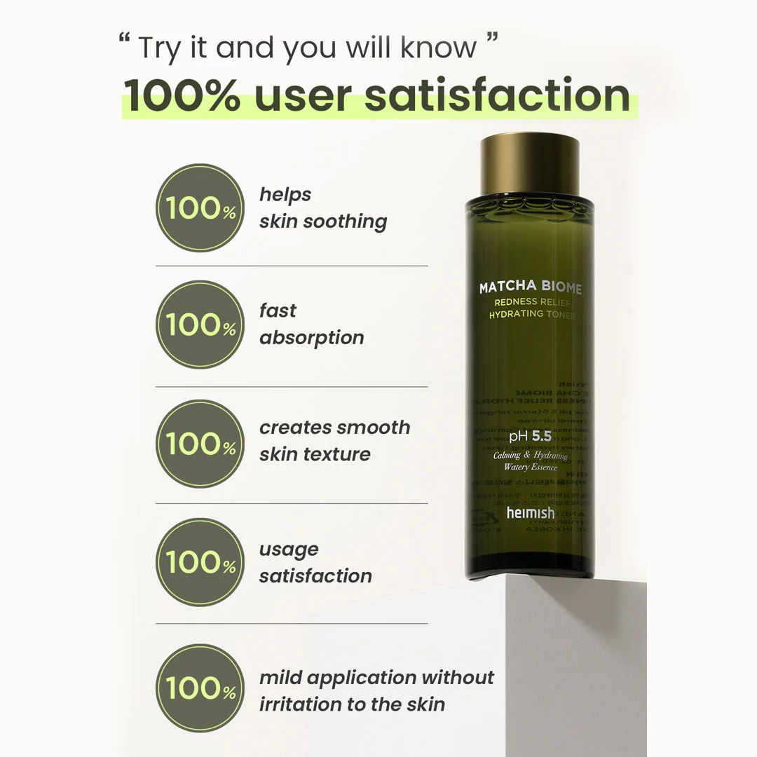 Tónico de esencia acuosa que contiene extracto de matcha, probióticos e ingredientes hipoalergénicos para mejorar la textura y la vitalidad de la piel.