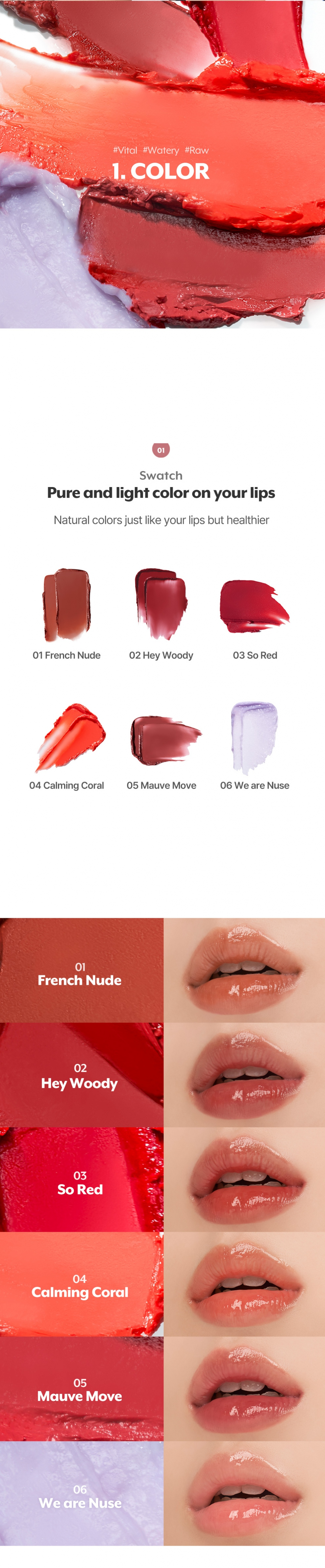 01 French Nude 02 Hey Woody 03 So Red 04 Calming Coral 05 Mauve Move 06 We are Nuse
